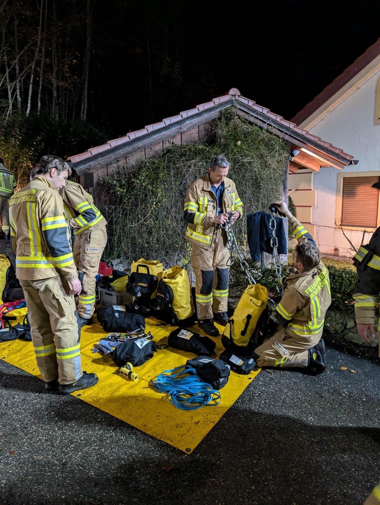Die Drehleiter wurde als Rettungsmittel eingesetzt und diente zusammen mit dem Hilfeleistungslöschfahrzeug zur Ausleuchtung der des Übungsgeländes. Parallel dazu wurde von der Bergwacht eine Seilbahn zur Patientenrettung aufgebaut.
